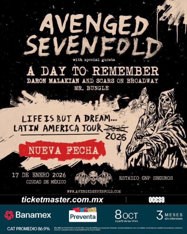 Transporte al Concierto de Avenged Sevenfold desde Querétaro – 17 de enero de 2026