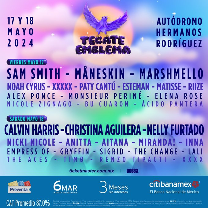 Tecate Emblema 2024 lineup: Calvin Harris, Christina Aguilera y más